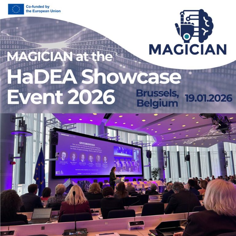 On Monday, 19th January, policymakers, EU-funded projects and key stakeholders came together at the European Health and Digital Executive Agency (HaDEA) Showcase Event 2026 in Brussels to exchange perspectives on competitiveness and preparedness in Europe. Our Coordinator UniTrento participated in the event as well, representing the MAGICIAN project and its